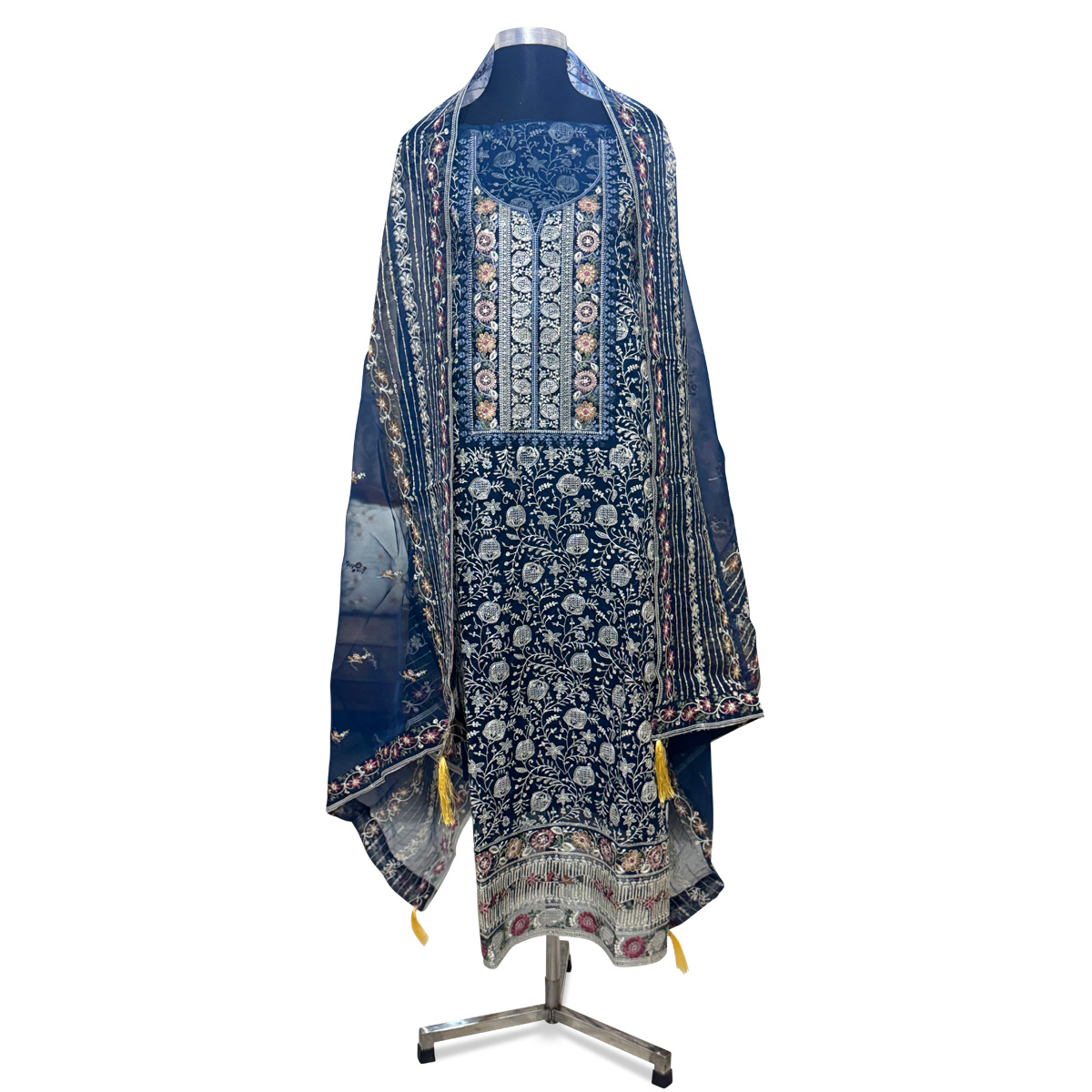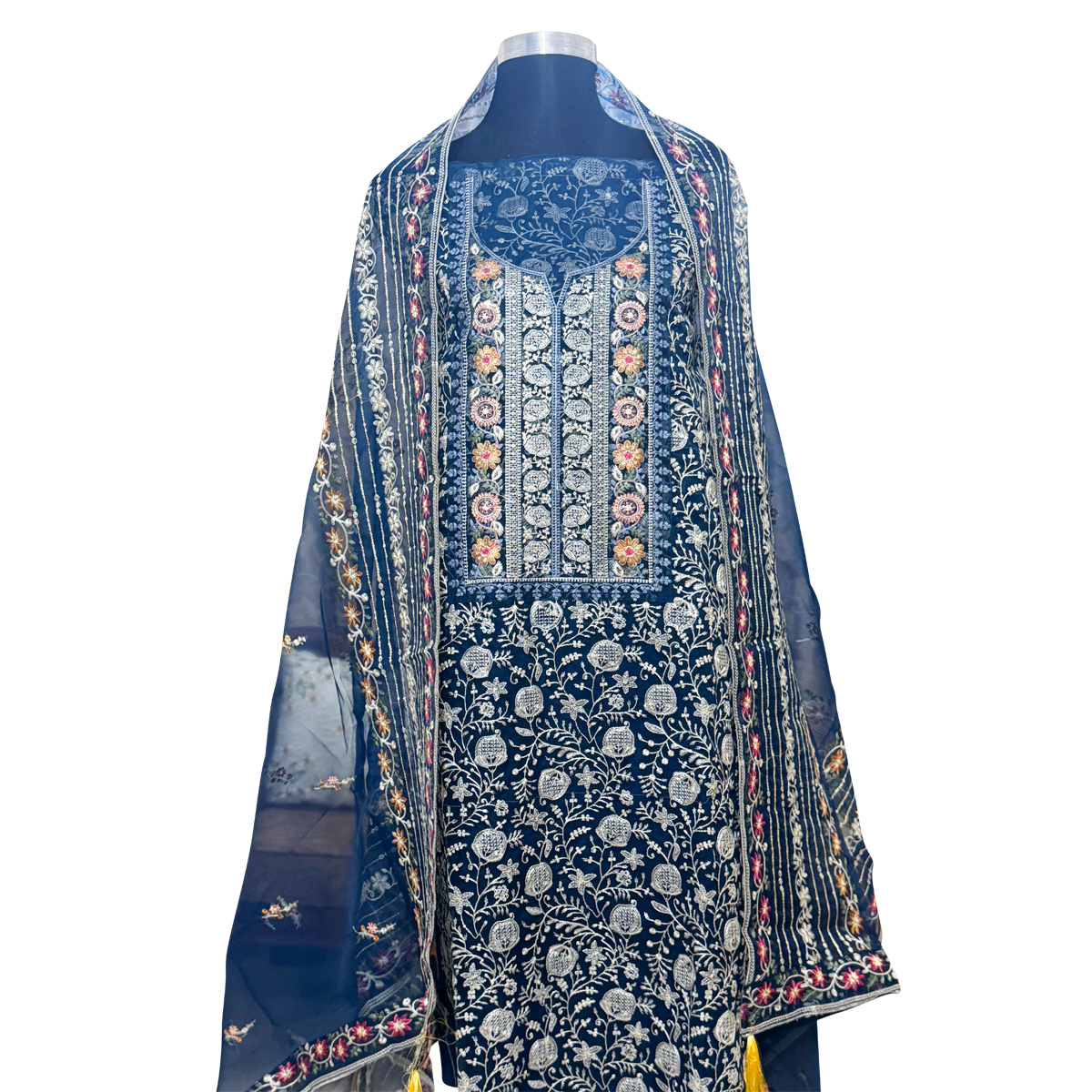 মসলিন অর্গানজা সিকোয়েন্স এর কাজ করা প্রিমিয়াম কোয়ালিটি আন স্টিচ ৪-পিস ড্রেস ।